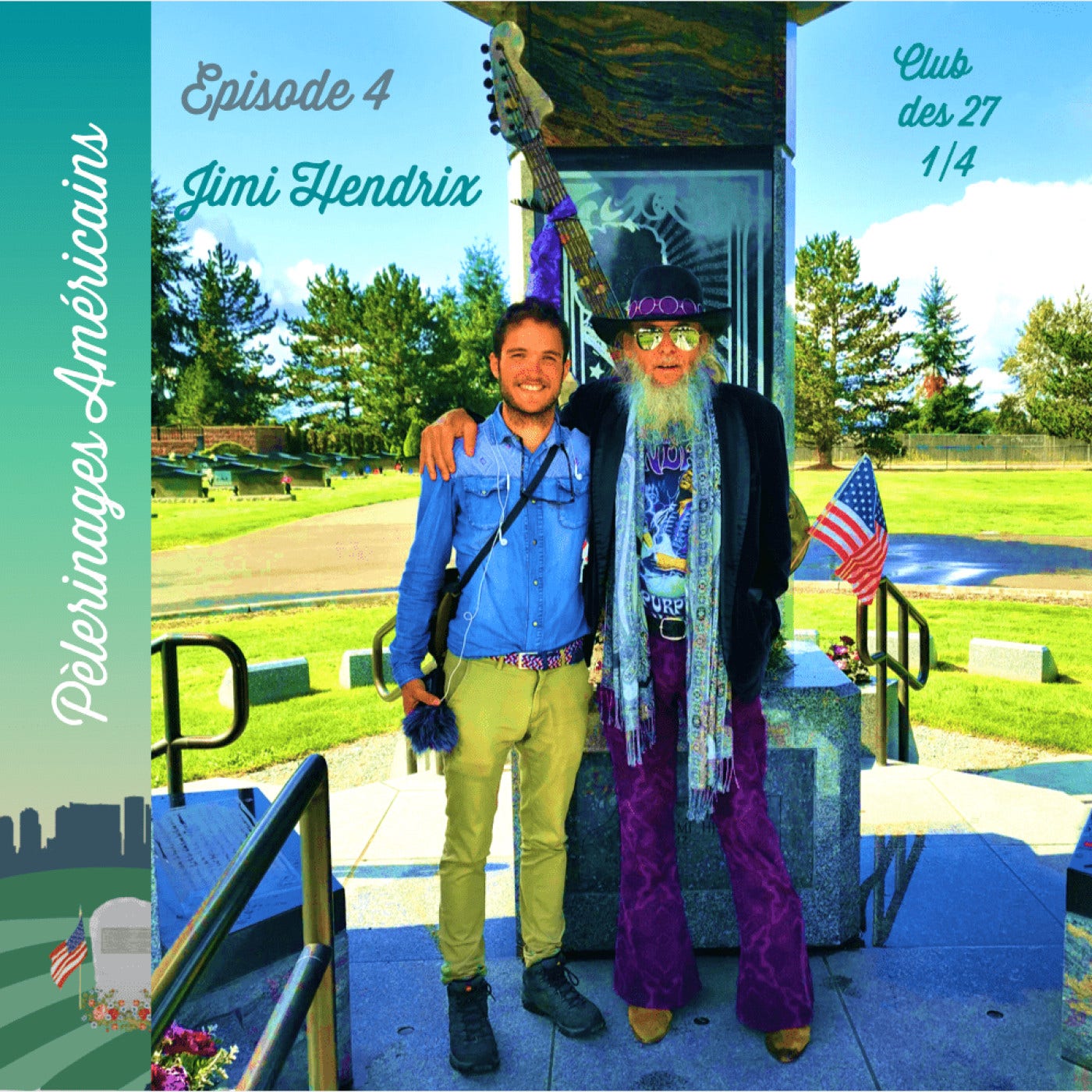 Pèlerinages Américains, c'est le podcast Culture et Aventure aux Etats-Unis.Dans cet épisode, diffusé à l'occasion des 50 ans de la mort de Jimi Hendrix, Alex vous emmène à Seattle rencontrer la communauté des fans du "Dieu de la guitare".Embarquez avec lui en stop, direction : le Jimi Hendrix Memorial, le jour des 49 ans de la mort de Jimi.Au menu, pas mal de surprises et des rencontres avec des fans qui viennent depuis plus de 40 ans... et parfois tous les jours. Cet épisode est le numéro 4 de Pèlerinages Américains. Et le premier consacré aux icônes américaines du club des 27.Instagram : Une création d'Alexis Grardel pour le pilgrim qui sommeille en vous
